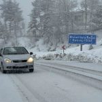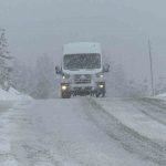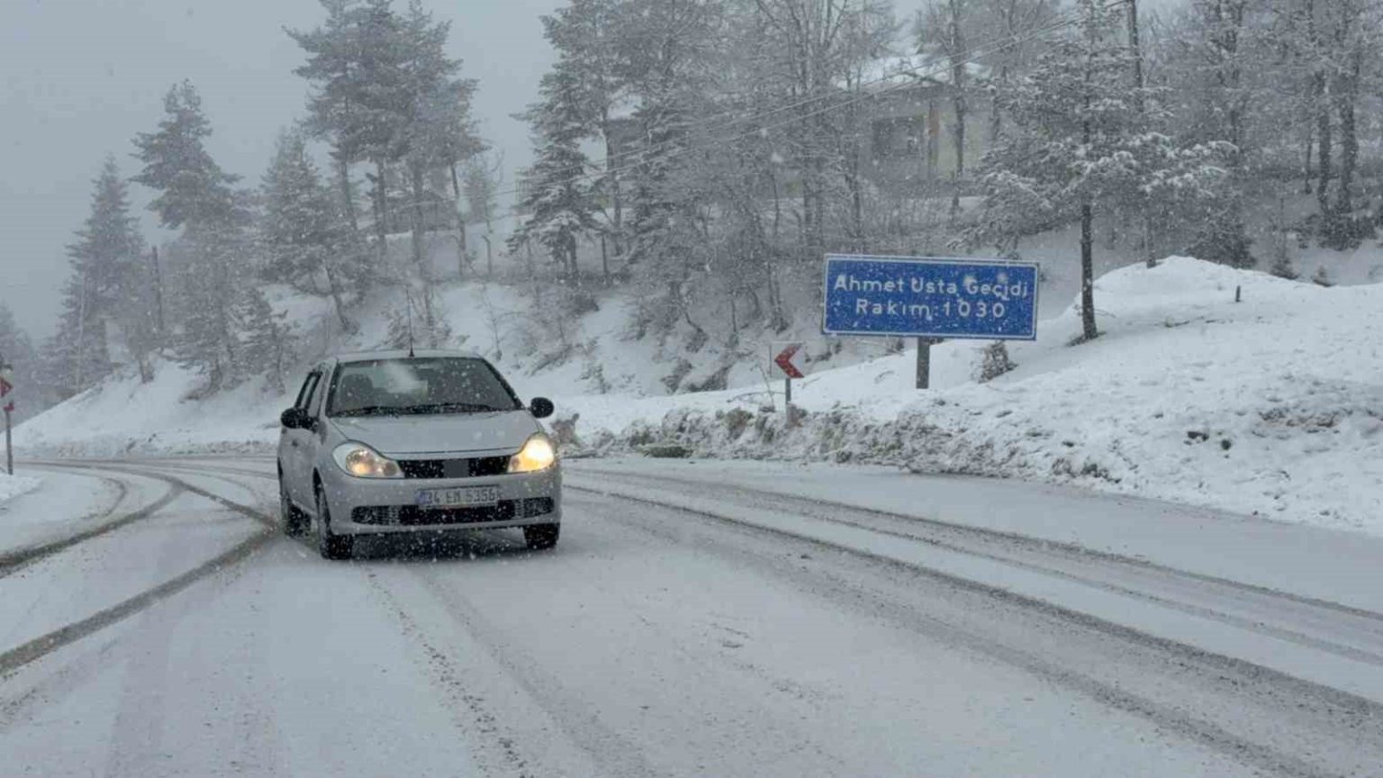 Kar yağışının etkili olduğu bölgede sürücülerin dikkatli ilerlediği, düşük hızda seyrettikleri görülüyor.