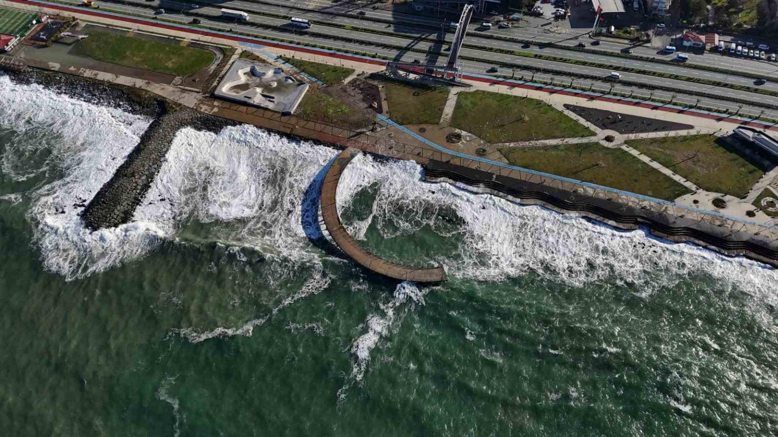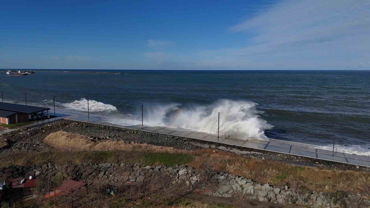 Karadeniz’de etkili olan fırtınanın getirdiği dalgalar Rize Sahili’nde havadan görüntülendi.