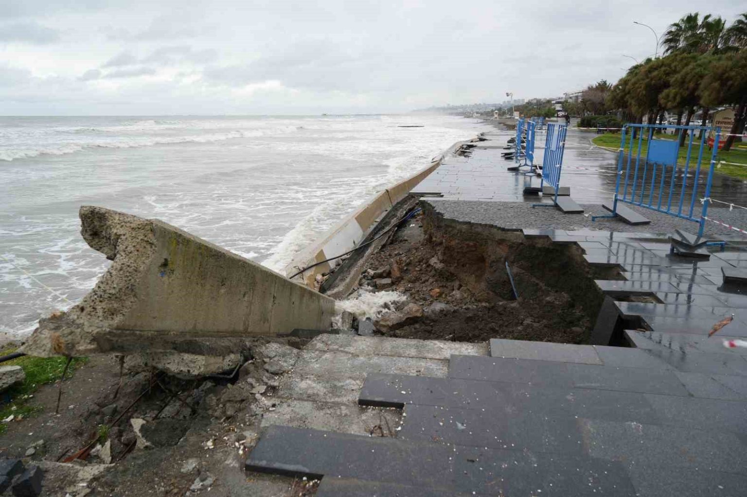 Samsun’da etkili olan şiddetli fırtına nedeniyle Karadeniz’de oluşan 2-3 metrelik dev dalgalar, Atakum sahilinde yürüyüş yollarına ve tesislere zarar verdi.