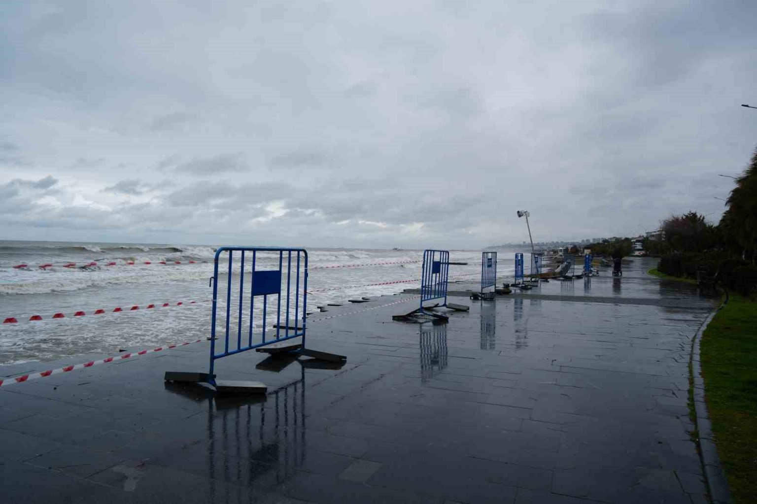 Samsun’da 3 gündür aralıksız devam eden yağışla birlikte etkili olan şiddetli fırtına, özellikle Atakum ilçesinde hayatı olumsuz etkiledi. Karadeniz’de oluşan dev dalgalar zaman zaman 2 ila 3 metreyi aşarak sahile vurdu. Fırtınanın etkisiyle büyüyen dalgalar, sahil şeridini adeta yıktı geçti.