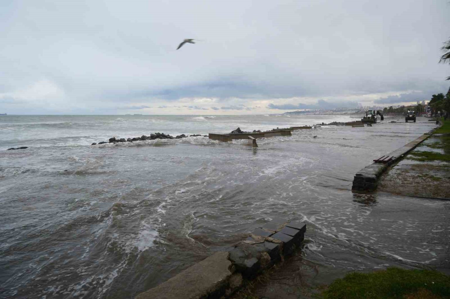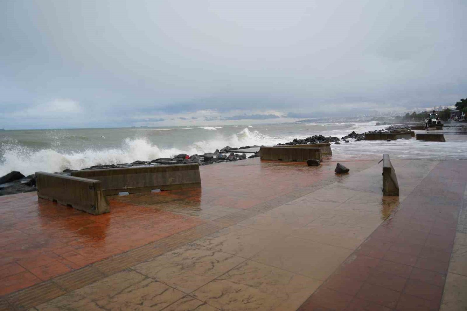 Karadeniz’de etkili olan fırtına nedeniyle Samsun’un Atakum ilçesi Körfez mevkisinde deniz taşkınları yaşandı. Dev dalgaların kıyıya taşıdığı taş, kum ve kaya parçaları sahil bandını kaplarken, Büyükşehir Belediyesi ekipleri bölgede temizlik çalışması başlattı.