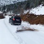 Kar kalınlığının normal araçların seyrine engel olduğu bölgede, arazi aracının gücü ve arkasındaki aparatın etkisiyle yol kısa sürede güvenli hale getirildi.