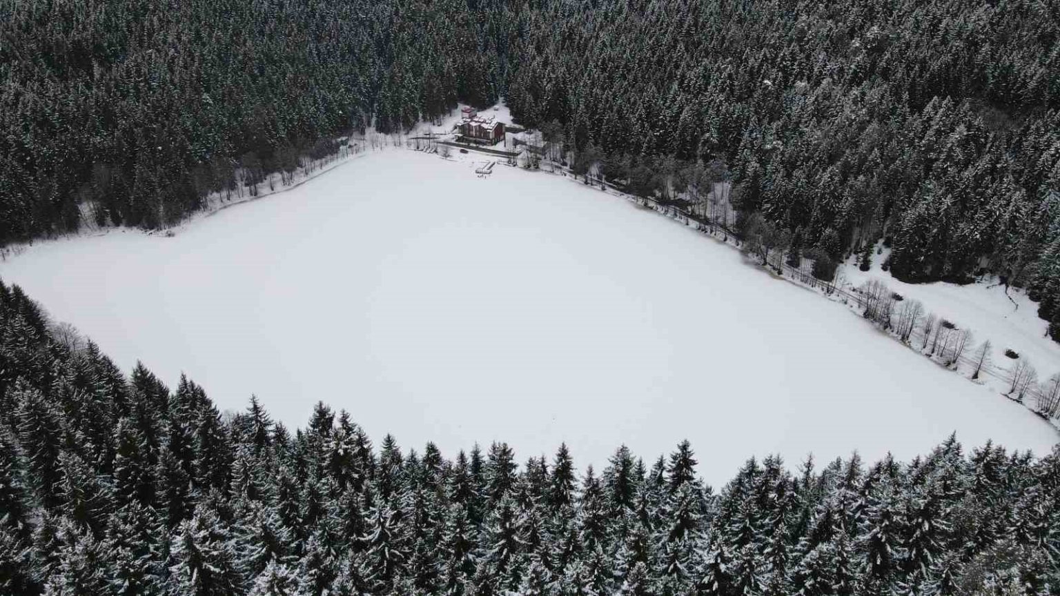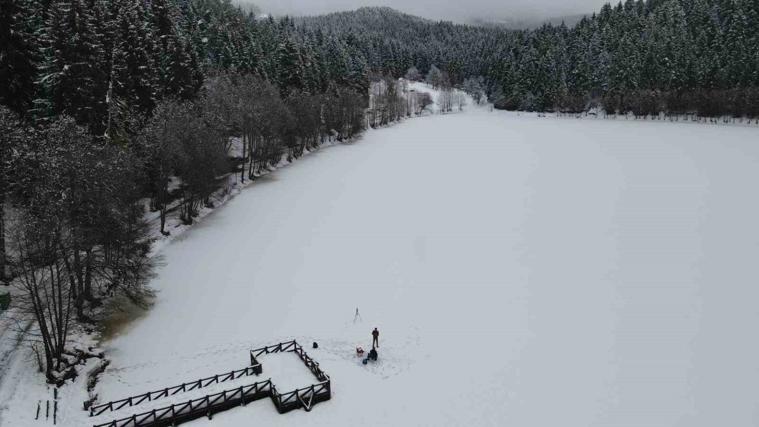 Yaklaşık 25 metre derinliğe sahip gölde oluşan buzlanma sonrası ortaya çıkan görüntüler, doğaseverler ve fotoğraf tutkunları için eşsiz kareler sundu. Özellikle dron ile kaydedilen görüntülerde, beyaz örtü altındaki Karagöl ve çevresindeki ormanlık alanın oluşturduğu doğal tablo öne çıktı.