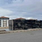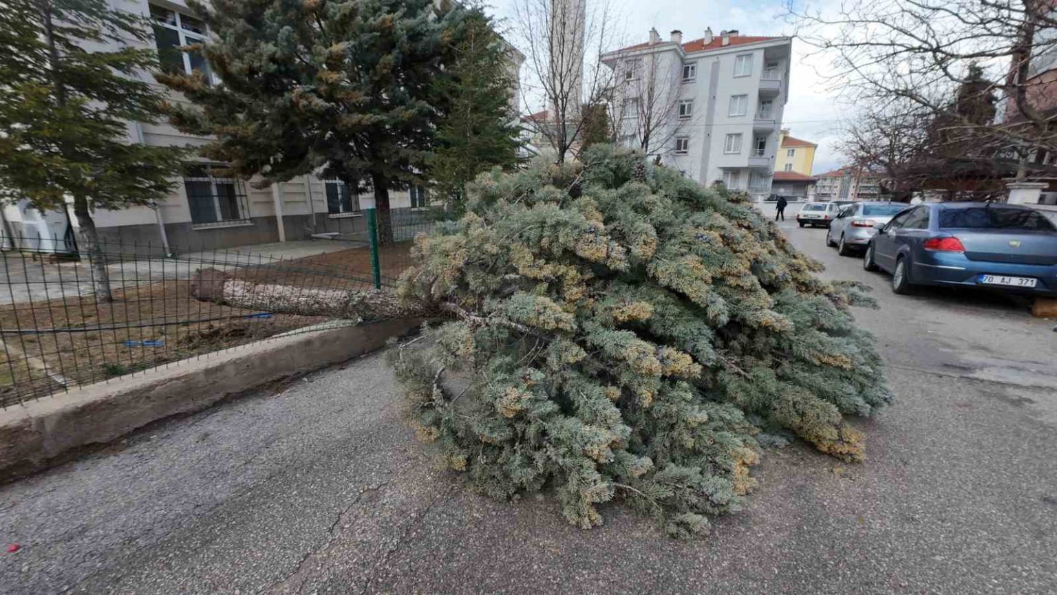 Karaman’da etkili olan şiddetli fırtına, seyir halindeki kamyoneti devirdi, birçok binanın çatısını uçurdu. Devrilen ağaçlar ve çatılardan kopan parçalar araçlara da zarar verdi.