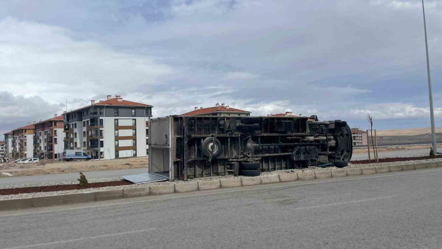 Karaman’da şiddetli fırtına kamyoneti devirdi, çatılar uçtu