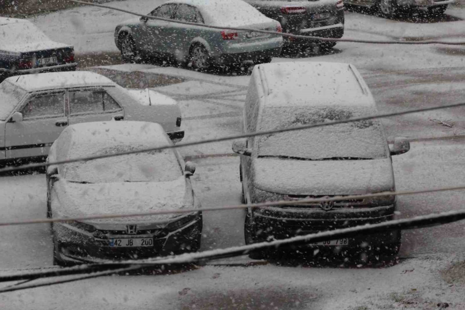 Konya’nın Karapınar ilçesinde yılın son günü başlayan kar yağışı vatandaşlar tarafından sevinçle karşılanırken, ilçe beyaz örtüyle kaplandı.
