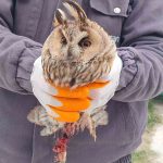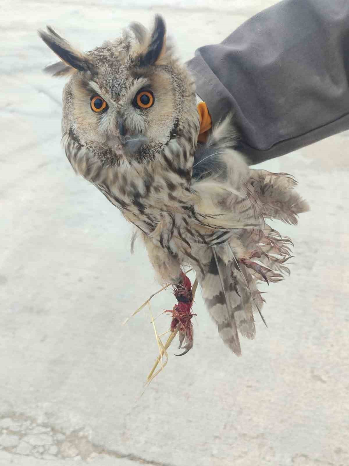 Konya’nın Karapınar ilçesinde ayakları kırık halde bulunan uzun kulaklı baykuş tedavi altına alındı.