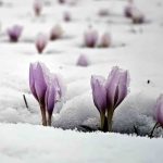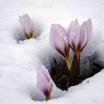 Karla buluşan çiğdemler güzel görüntüler oluşturdu