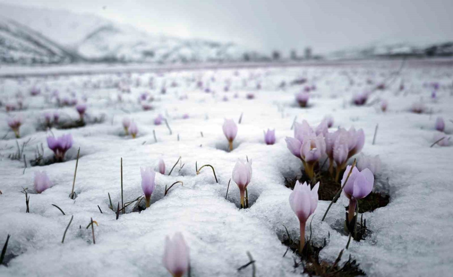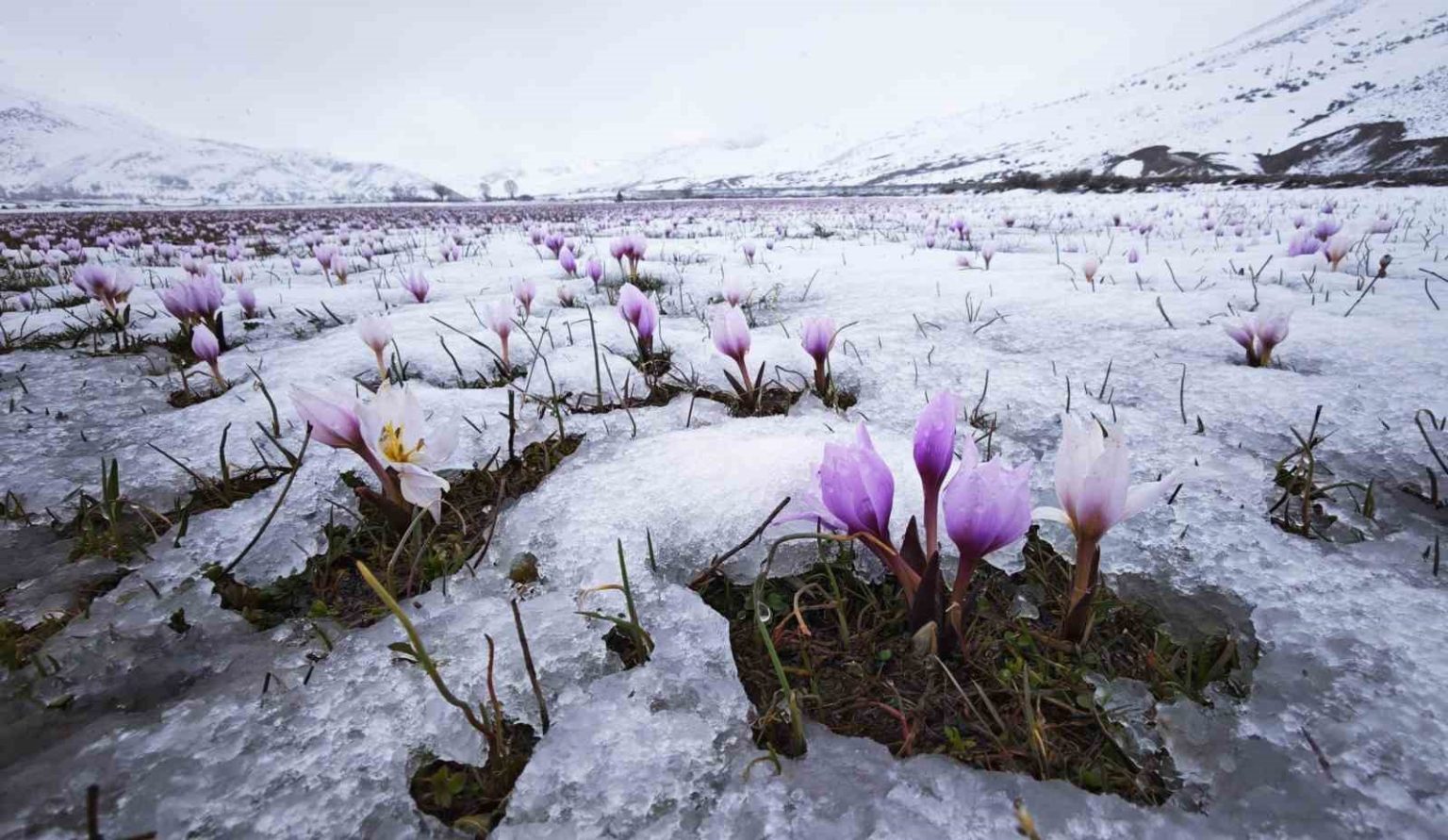 Bitlis’in Tatvan ilçesindeki Güzeldere Vadisi’nde kar altında kalan çiğdemler, ortaya hayranlık uyandıran görüntüler çıkardı.