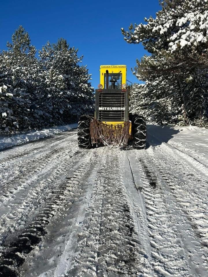 Karabük genelinde etkili olan kar yağışının ardından kapanan köy yollarının ulaşıma açılması için İl Özel İdaresi ekipleri tarafından yürütülen karla mücadele çalışmaları aralıksız sürdürülüyor.
