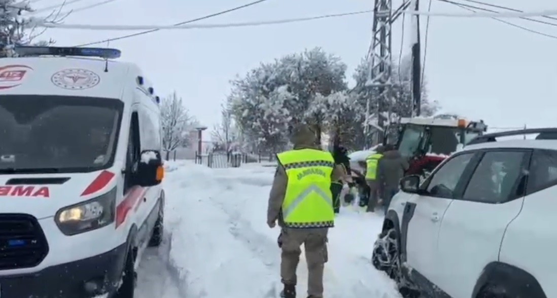 Karla kapanan köy yolunda zamanla yarış: Hasta sağlık ekiplerine ulaştırıldı