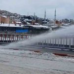 Zonguldak’ın Alaplı ilçesinde etkili olan kar yağışı nedeniyle belediye ekipleri, cadde ve sokakları deniz suyu kullanarak ulaşıma açıyor.