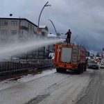 Alaplı Belediyesi ekipleri, buzlanmayla mücadele kapsamında tuz dökmek yerine denizden çekilen suyu itfaiye araçlarıyla cadde ve sokaklara püskürterek temizlik çalışması yaptı. Özellikle rampalı bölgelerde uygulanan yöntemle kar ve buzun kısa sürede eritildiği belirtildi.