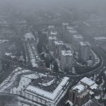 İstanbul’un Başakşehir ilçesinde kar yağışı havadan görüntülendi. Kartpostalık görüntüde stadyum, evler ve yerlerin karla kapandığı görüldü.