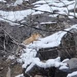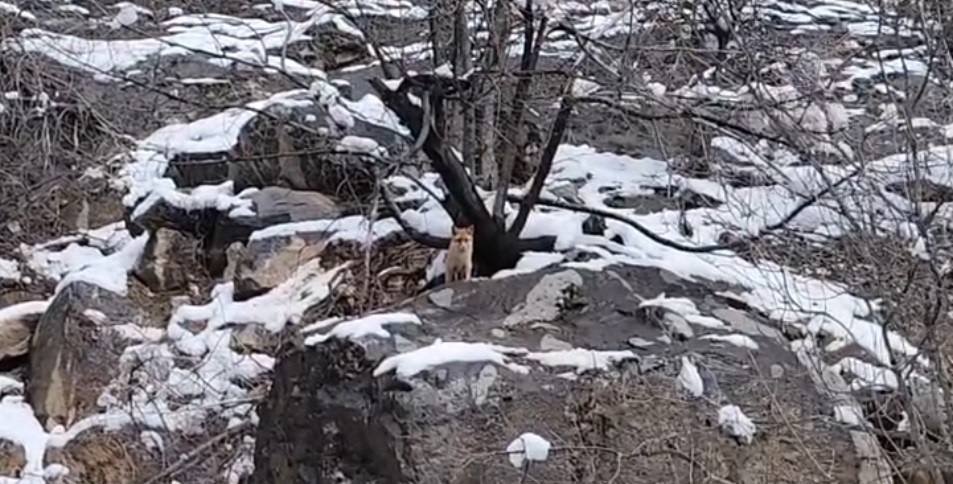 Tunceli-Ovacık karayolunda ağır kış şartları yaban hayatını olumsuz etkilemeye devam ediyor. Yoğun kar yağışı ve dondurucu soğuklar nedeniyle besin bulmakta zorlanan bir tilki, karla kaplı dağlık alanda yiyecek ararken görüntülendi. Yol kenarında bir süre dolaşan tilki, vatandaşlara doğru bakarak çevreyi kontrol etti. Soğukkanlı tavırlarıyla dikkat çeken hayvan, kısa süre sonra dağlık alana yönelerek gözden kayboldu.