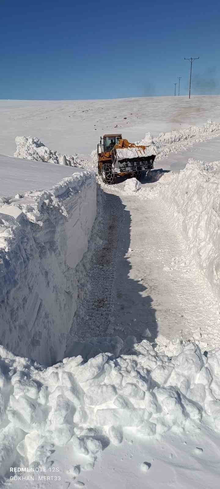 Bingöl İl Özel İdaresi ekipleri, Karlıova’da 2 metreyi aşan kar nedeniyle kapanan yolları ulaşıma açmak için çalışmalarını sürdürüyor.