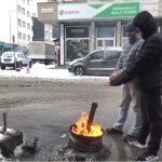 Dışarıda çalışmak zorunda kalan vatandaşlar ve esnaflar, soğukla mücadele etmek için dükkan önlerinde odun ateşleri yaktı.