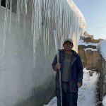 Aydın, “Baharı beklerken havaların eksi 15-20 dereceye düşmesi baharın biraz geç geleceğini gösteriyor. Kars’ta bu sene hayat şartları baya zorlaştı. Evin yüksekliği yaklaşık 3 metre. Boyum 1 metre 69 santim, kopardığımız buzun uzunluğu ise yaklaşık 1 metre 60 santim” diye konuştu.