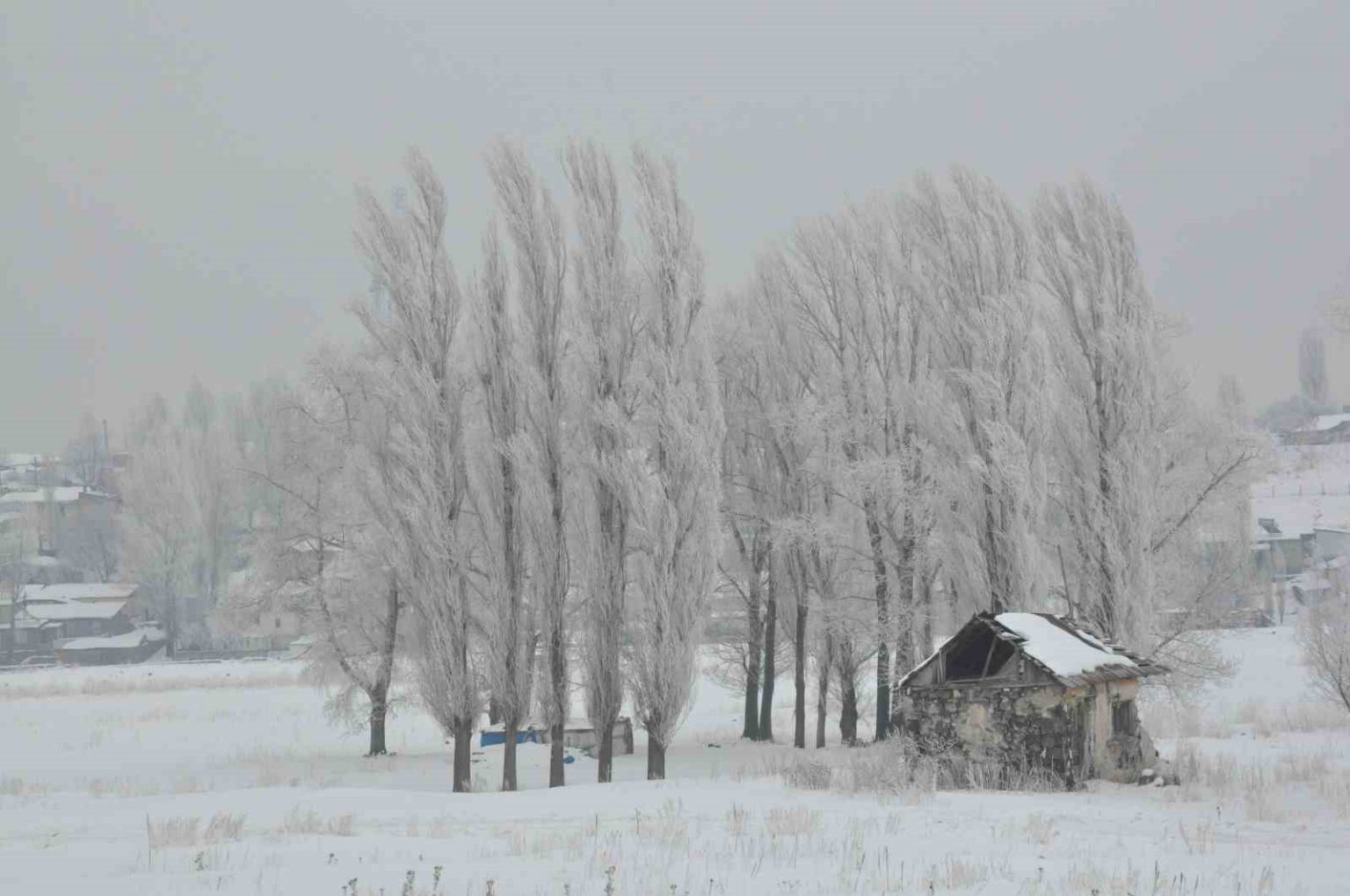 Kars’ın soğuğu vatandaşın kirpiklerini dondurdu. Soğuktan kent genelinde ağaçlar kırağı tuttu.