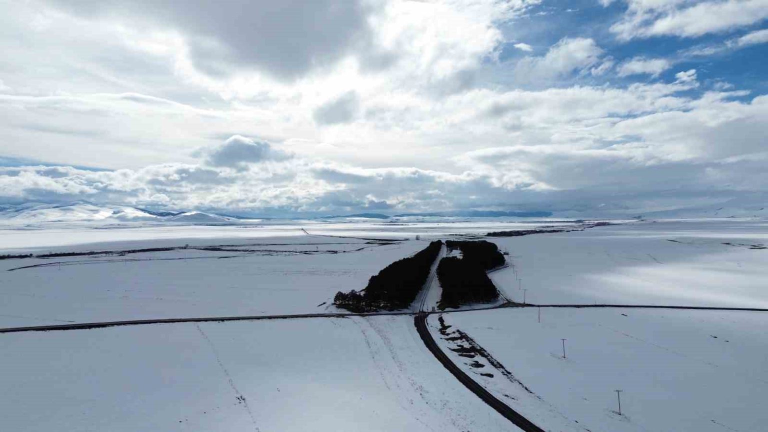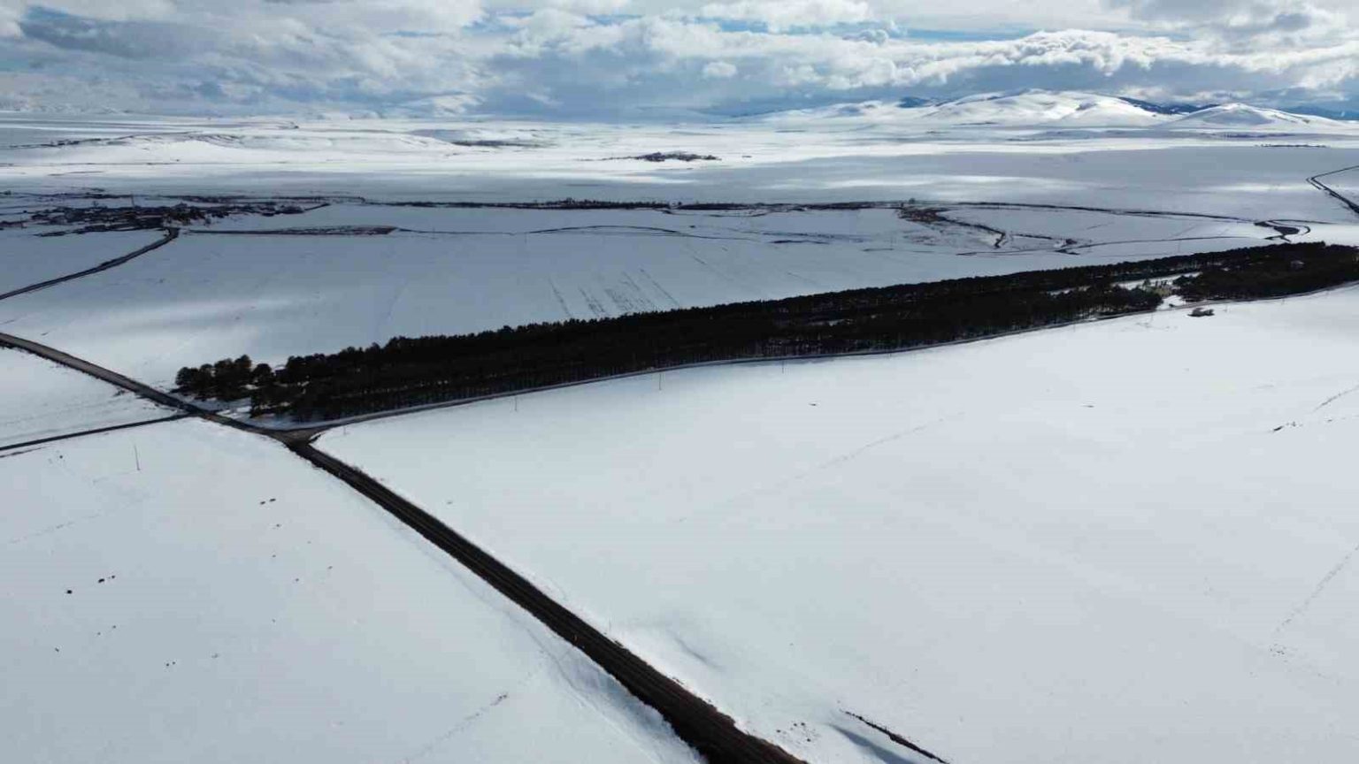 Bölgedeki geniş tarım arazileri de yoğun kar yağışından nasibini aldı. Bahar ekim sezonuna hazırlanan tarlalar, kalın kar tabakasıyla tamamen örtülerek adeta beyaz bir denizi andırdı. Havadan çekilen görüntülerde, karla kaplı arazilerin geometrik yapısı dikkat çekerken, doğanın sakinliği görenleri büyülüyor.