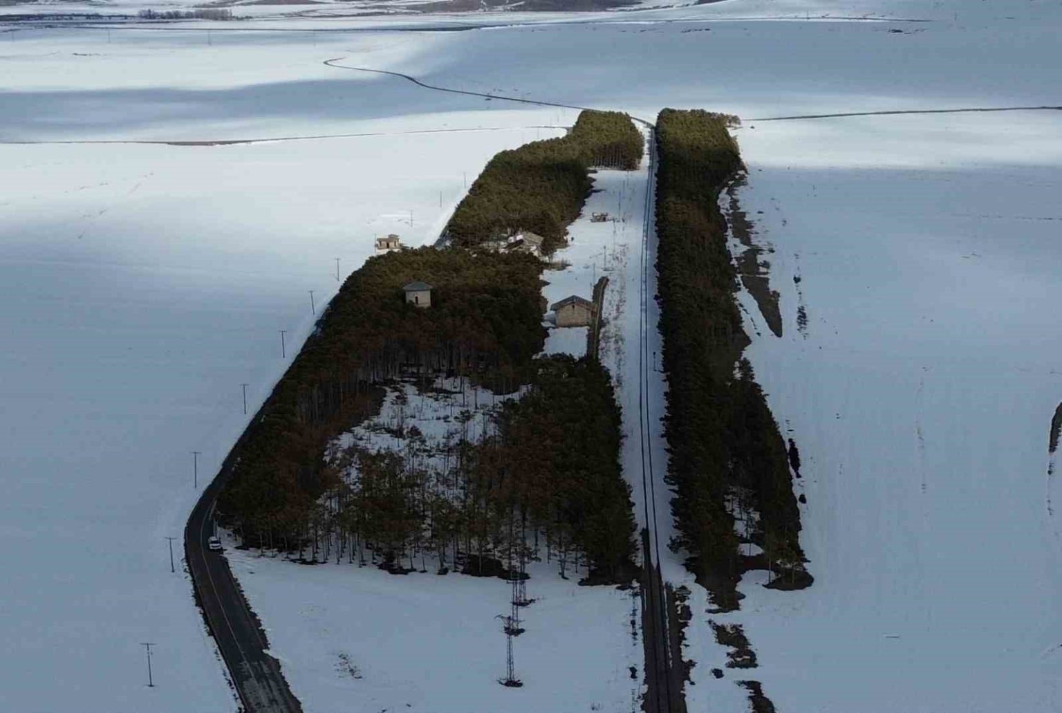 İstasyon çevresindeki çam ormanları, manzaraya derinlik katarken, yeşil ile beyazın oluşturduğu kontrast, bölgeyi görsel açıdan daha da etkileyici hale getirdi. Özellikle drone ile kaydedilen görüntüler, doğanın sunduğu eşsiz uyumu gözler önüne serdi.