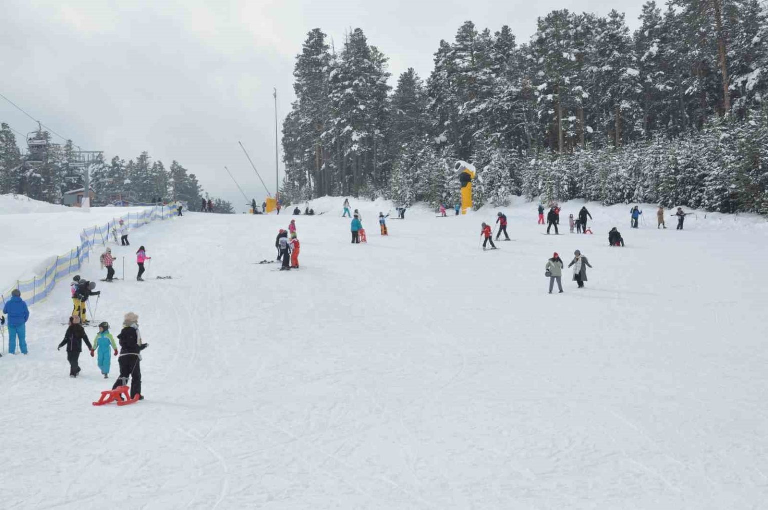 Sabahın erken saatlerinden itibaren kayak takımlarını ve kızaklarını alan vatandaşlar, telesiyejlerin yolunu tuttu. Telesiyejlerle zirveye çıkan vatandaşlar, sarıçam ağaçlarının arasından aşağı süzüldü. Profesyonel kayakçıların yanı sıra çocukların ve acemi kayakçıların heyecanı ise renkli görüntülere sahne oldu. Bazı vatandaşlar kayak yapmayı tercih ederken, bazıları ise kızakla kayarak eğlenceli anlar yaşadı.