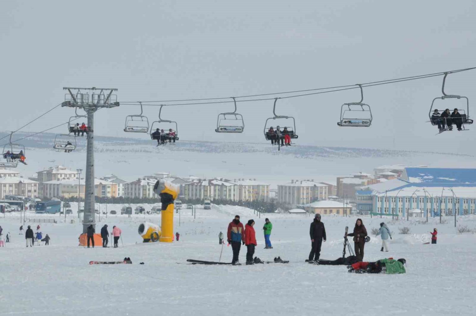 Kars’ta kayağını kapan Sarıkamış’a koştu. Sarıkamış Kayak Merkezi’ndeki yoğunluk böyle görüntülendi.