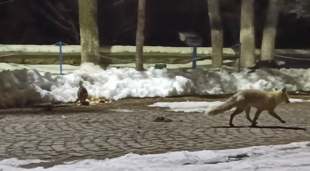 Bir süre sonra yeniden bölgeye gelen kızıl tilki, bu kez vatandaşın attığı yiyeceklerle karnını doyurdu. Tilkinin bazı yiyecekleri ise daha sonra yemek üzere kara gömdüğü görüldü. Tilkinin yiyecekleri ağzıyla taşıyarak karı eşeleyip gömmesi ve ardından üzerini kapatması kameraya yansıdı.