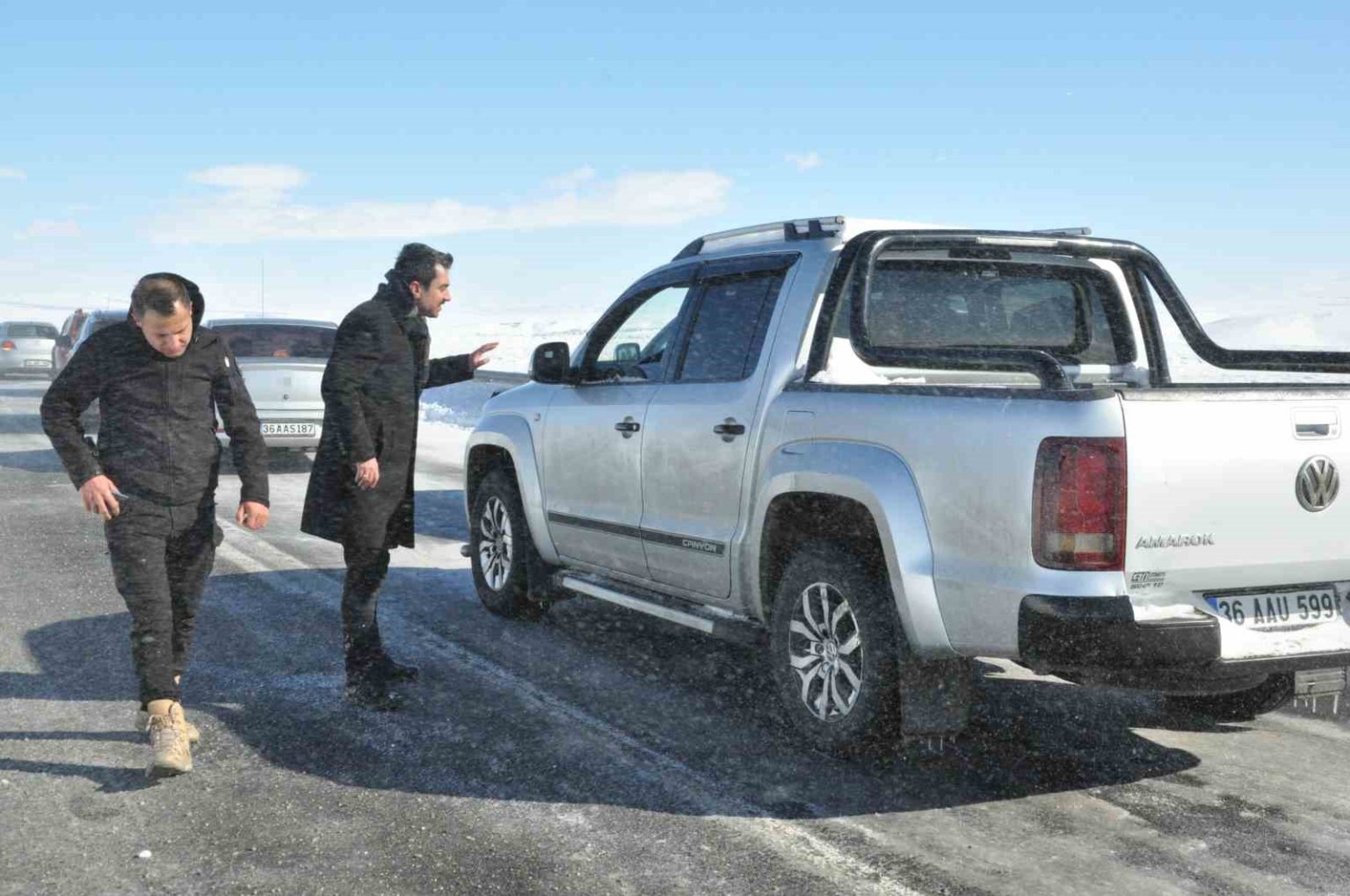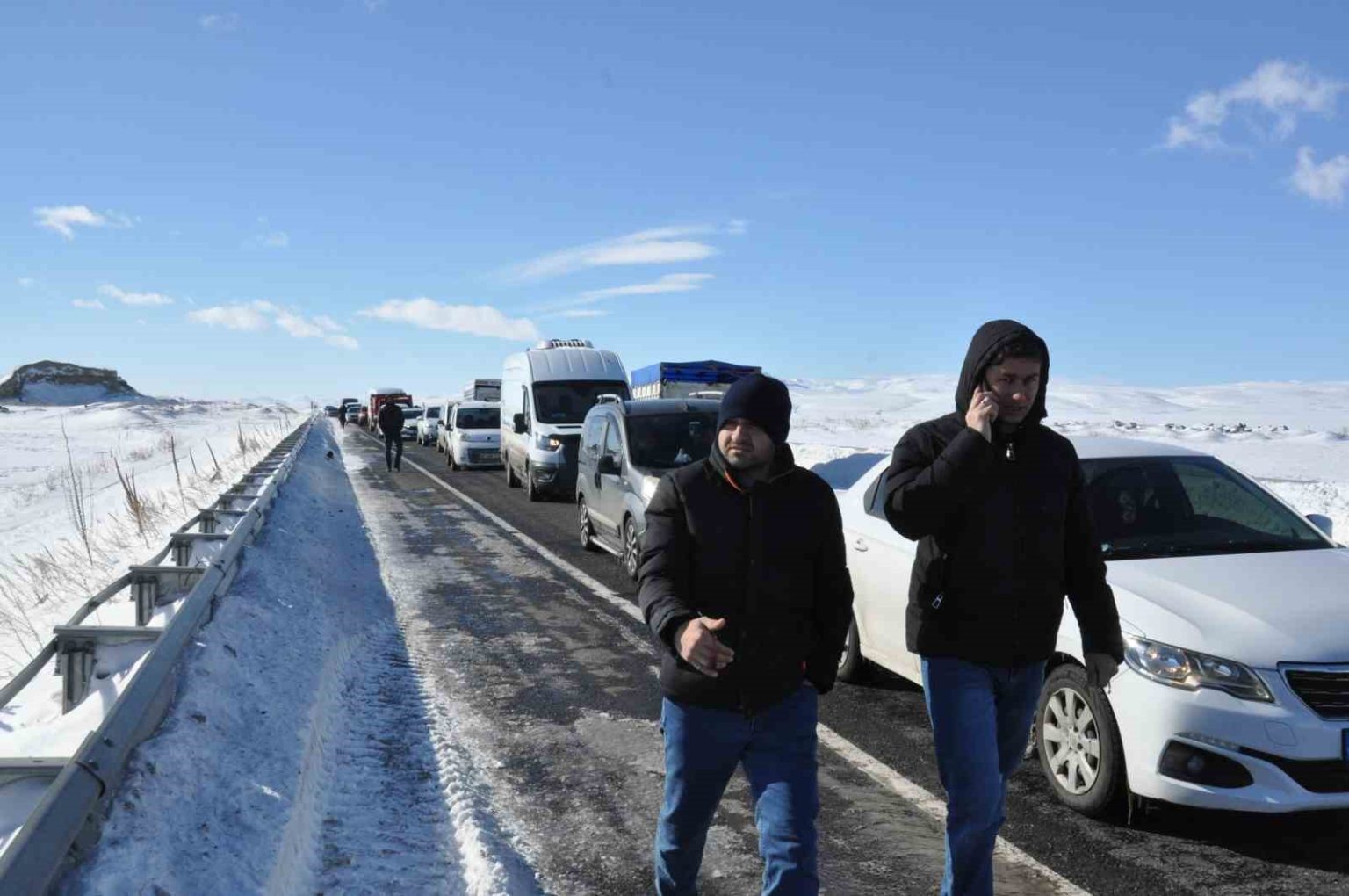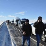 Yolun aşırı buzlanmasından dolayı tırın kayarak yolu kapattığını ifade eden sürücüler, “Tır kayarak yolu kapattı. Yaklaşık 1 saattir yolun açılmasını bekliyoruz” dediler.