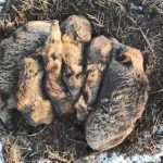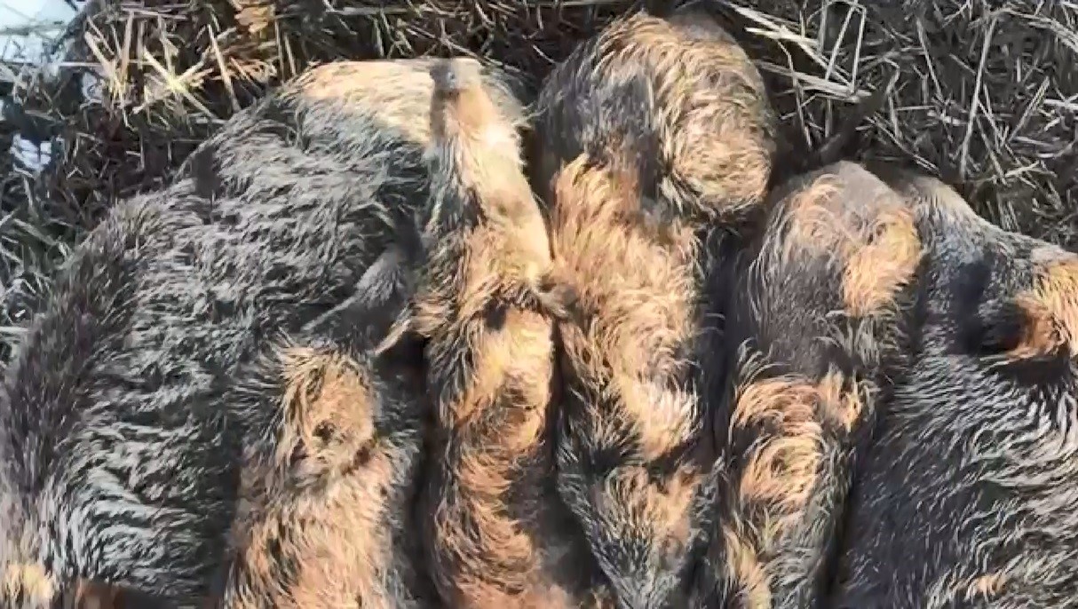 Kars’ta yumak halinde uyuyan domuz ailesi böyle görüntülendi