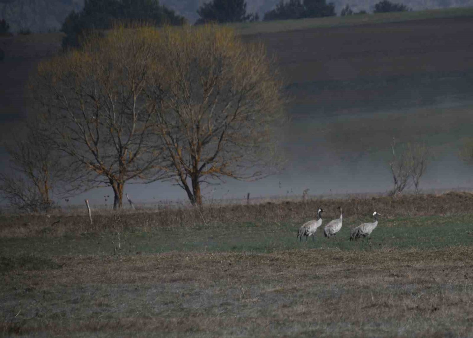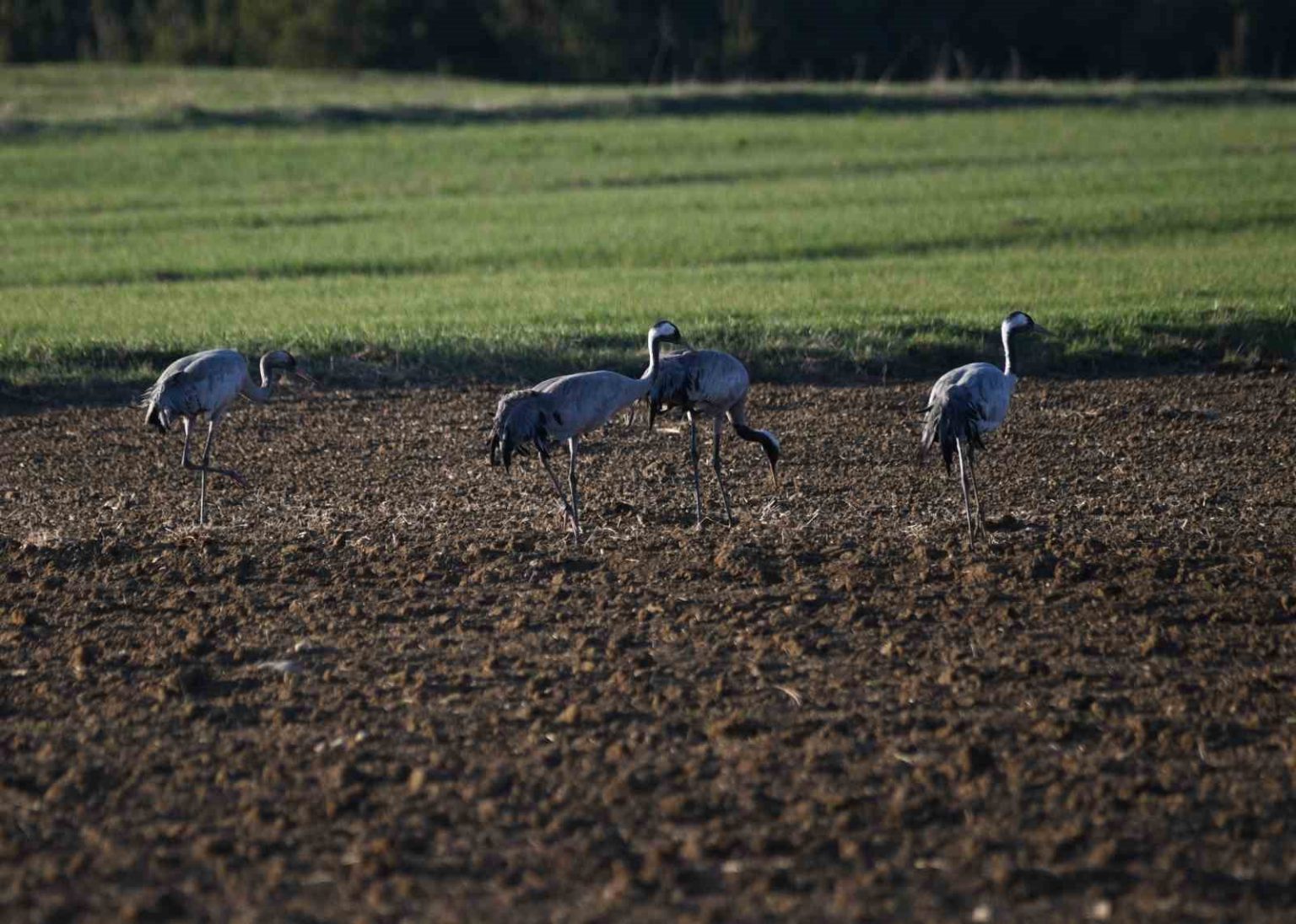 Bahar göçü yolcuğuna çıkan ve doğanın en sadık kuşları olarak bilinen turnalar, Kastamonu’da mola verdi. Genellikle sürü halinde göç yolculuğuna çıkan turnalar, bu sefer aile olarak objektiflere yansıdı. Kastamonu’nun sulak alanlarında mola veren iki erişkin ve iki yavrusundan oluşan grup, beslenirken ve dinlenirken fotoğraflandı. Birbirlerinden bir an olsun ayrılmayan turna ailesi, ebeveynlerin yavruları aralarına alarak sergilediği korumacı tavır, yaban hayatının en etkileyici dayanışma örneklerinden birini gözler önüne seriyor.