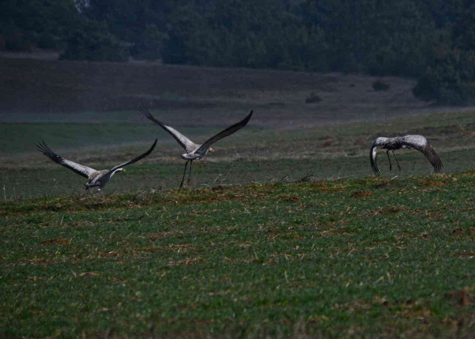 Baharın gelmesiyle göç eden turnalar, Kastamonu’nuda mola verdi. Aile bağlarının gücüyle tanınan turnalar objektiflere yansıdı.