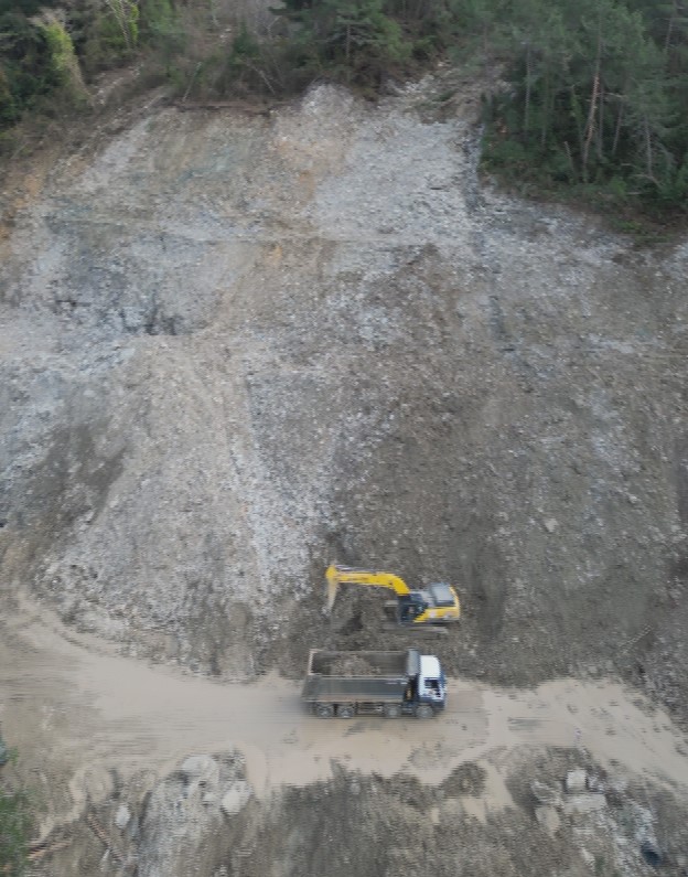 Karayolları 15. Bölge Müdürlüğü ekiplerince yolun tekrar ulaşıma açılabilmesi için başlatılan çalışmalar aralıksız sürüyor. Ekipler, kayan toprak kütlesini temizlerken, ayrıca zemin bölgesini sağlamlaştırarak yeni yol açıyor.