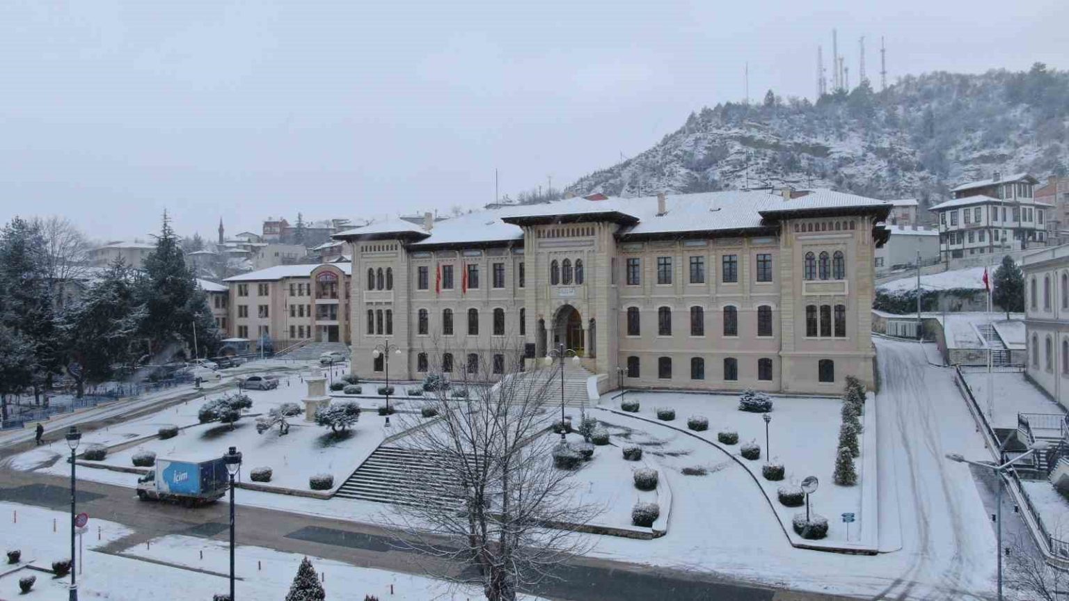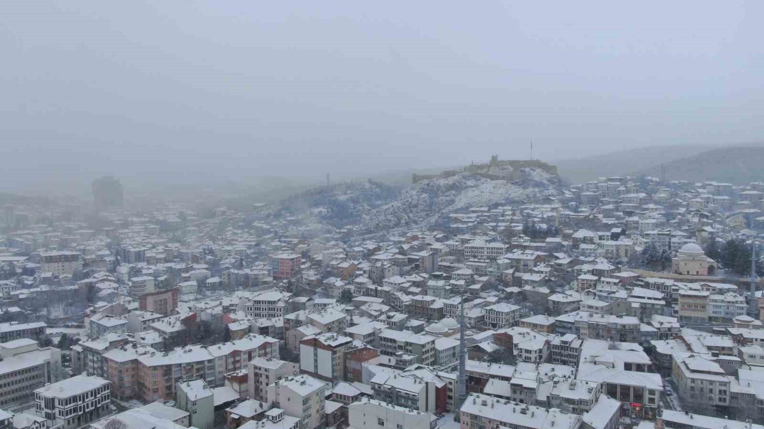 Kastamonu’da iki gündür kar yağışı etkisini sürdürüyor. Gece saatlerinden itibaren etkili olan başlayan kar, şehir merkezini beyaz örtüyle kapladı. Beyaz örtüyle kaplanan şehir merkezi havadan görüntülendi. Cumhuriyet Meydanı Şehit Şerife Bacı ve Atatürk heykeli ile tarihi Nasrullah Camisi ve Meydanı, Kastamonu Kalesi kar yağışıyla birlikte ayrı bir güzelliğe büründü.