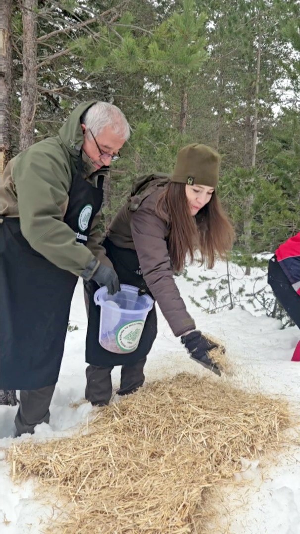 Ilgaz Dağı Yaban Hayatı Geliştirme Sahası’nda gerçekleştirilen çalışma kapsamında, 55 kişiden oluşan bir ekip tarafından 50 kilo buğday ile 3 balya saman bırakıldı.