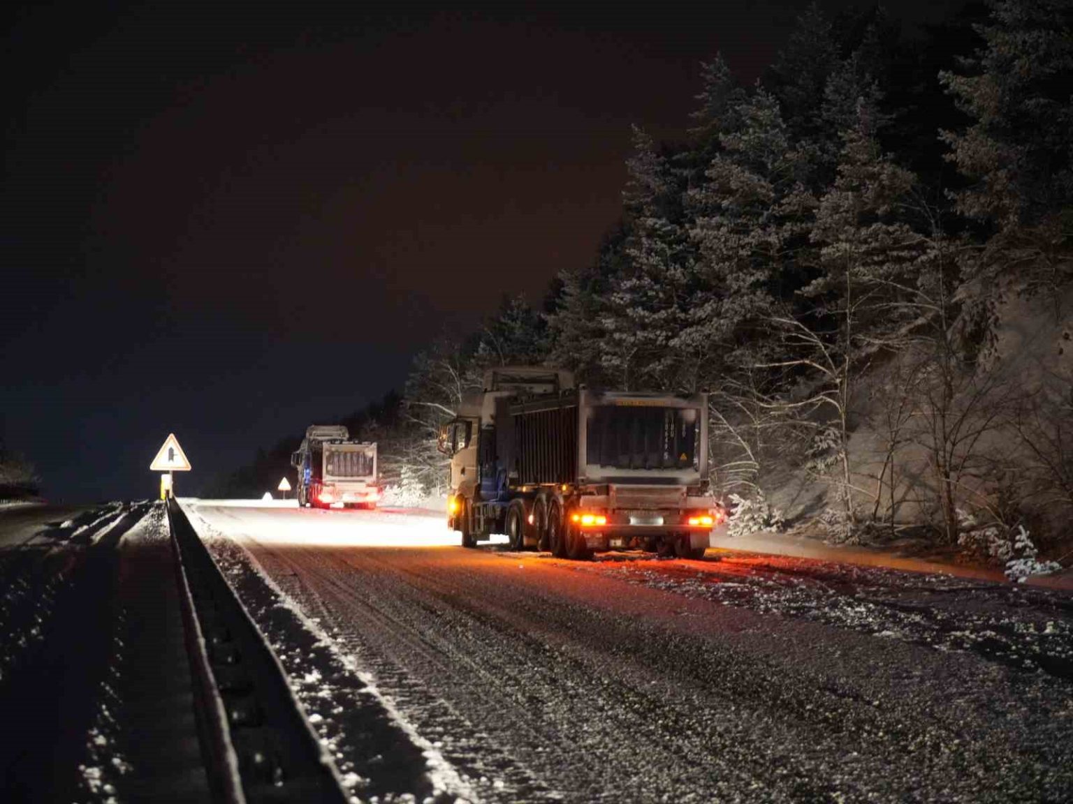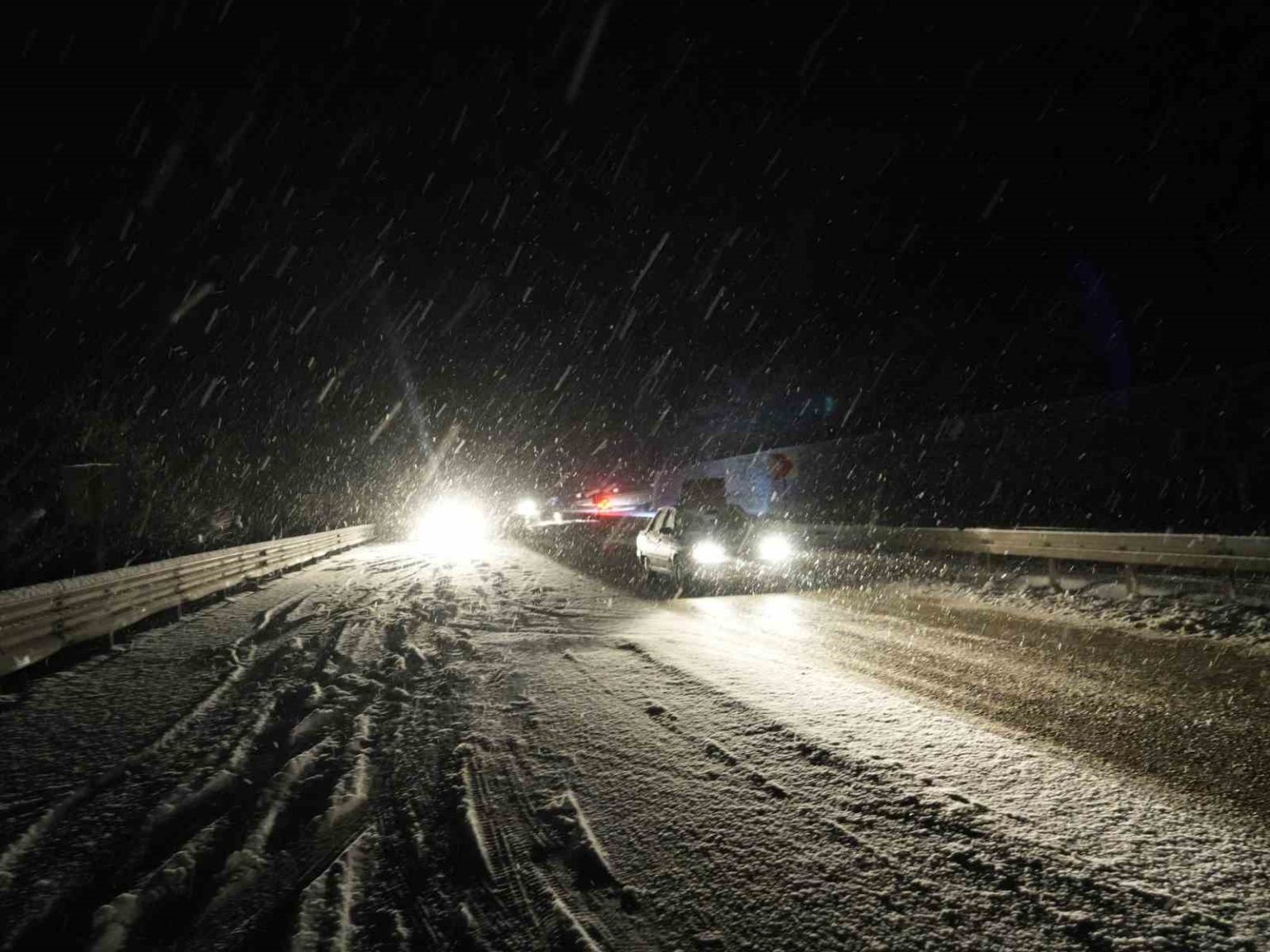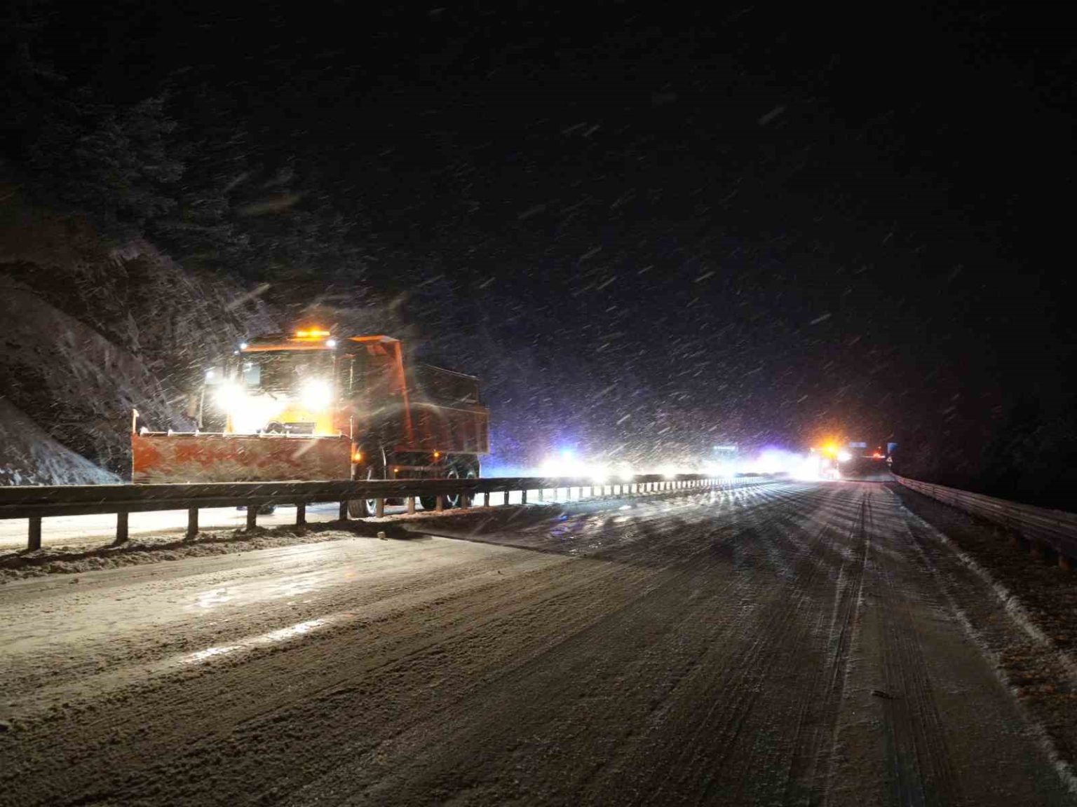 Karayollarına bağlı ekipler ise Oyrak mevkiinde hem kar kürüme hem de tuzlama çalışması yürüterek yolda mahsur kalan araçlara yardım ediyor.