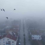 İlçe merkezini tamamen örten yoğun sis tabakası havadan görüntülendi.