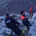 Kayalıklarda mahsur kalan keçiyi arama kurtarma ekipleri kurtardı
