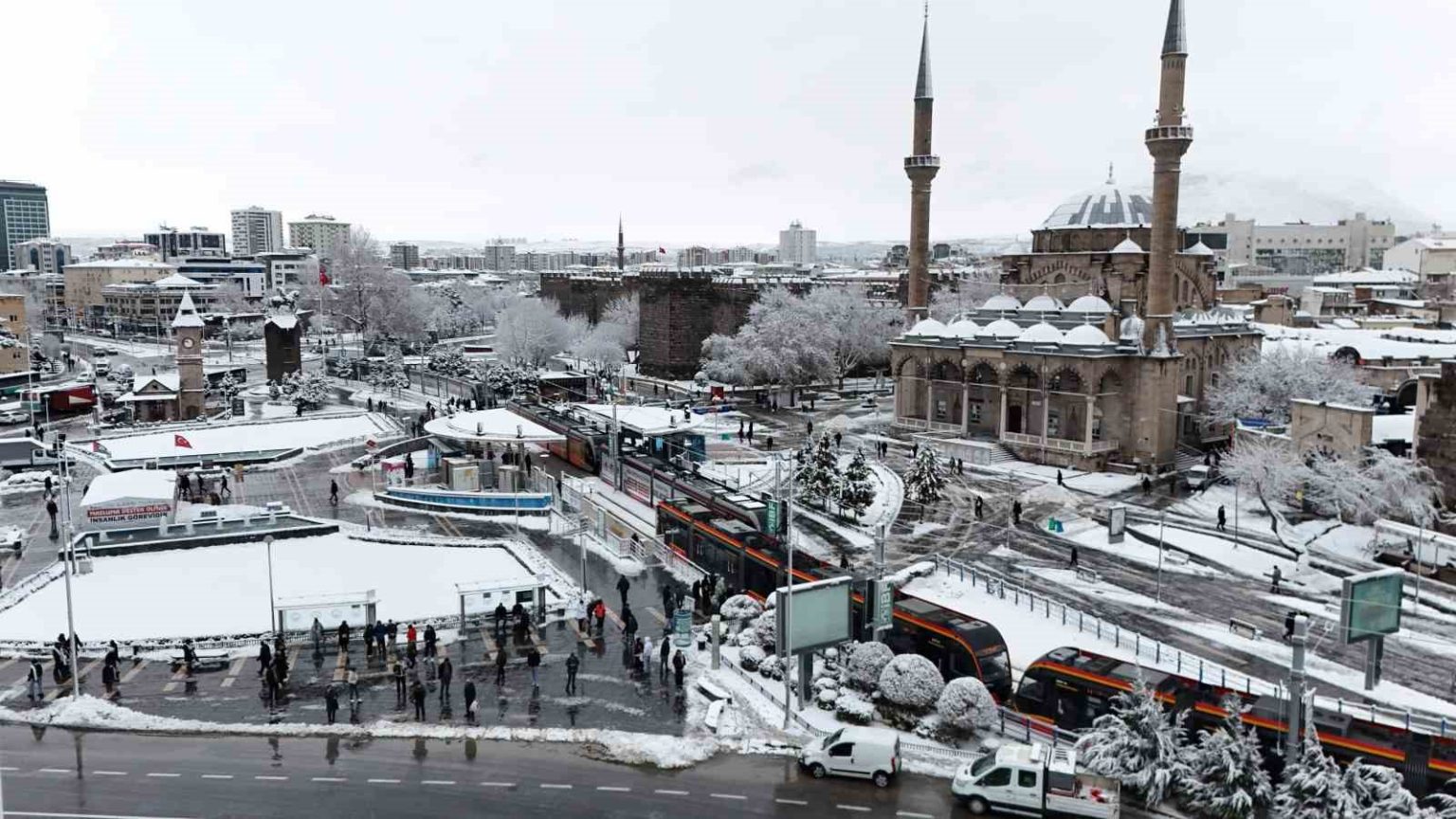Şehirde akşam saatlerinde başlayan kar yağışı, sabahın ilk saatlerine kadar etkisini sürdürdü. Yağışla birlikte şehirde beyaz örtü hakim olurken ortaya kartpostallık görüntüler çıktı. Roma, Bizans, Anadolu Selçuklu ve Osmanlı döneminde yaptırılan eserlerin yer aldığı Cumhuriyet Meydanı, havadan görüntülendi.