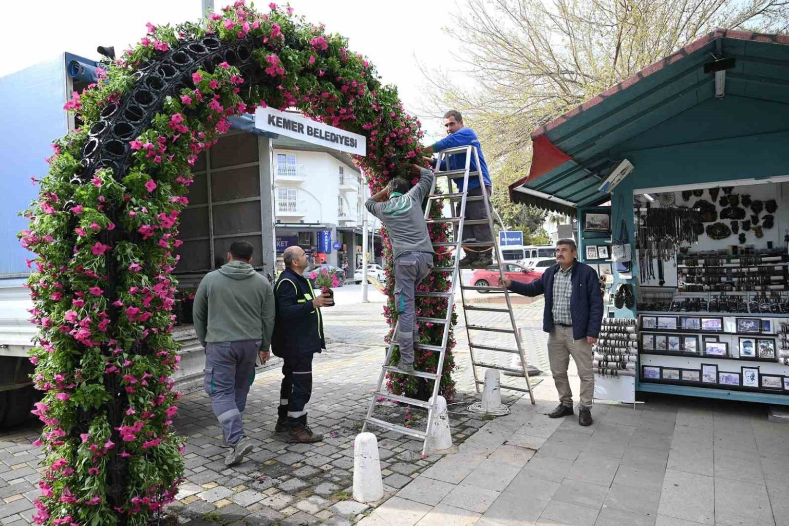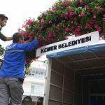 Kemer yaz sezonuna hazırlanıyor, ilçe petunyalarla süsleniyor