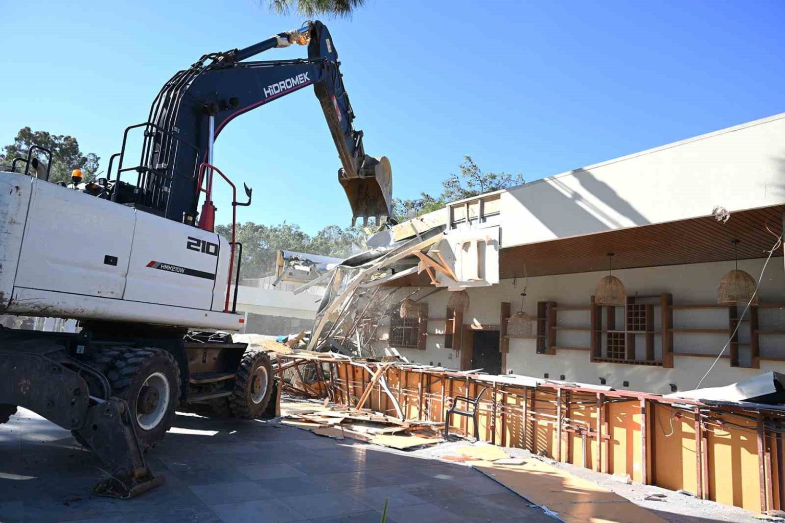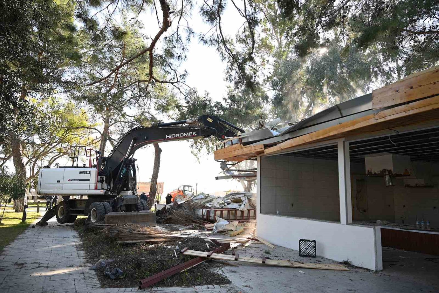 Cuma günü başlanan yıkıma bugün de devam edildi. Yıkımları engellemek için söz konusu otelin girişine park edilen kamyon ve tırlar, jandarma eşliğinde çekicilerle bulundukları yerden kaldırıldı. Belediye ekiplerinin iş makineleriyle kaçak yapıları yıkımı sırasında Kemer Belediyesi Zabıta Müdürlüğü ile jandarma ekipleri çevrede güvenlik önlemi aldı. Beldibi, Göynük, Çamyuva, Tekirova mahalleleri ile Çıralı mevkisinde de tespit edilen kaçak yapıların yıkımına kararlılıkla devam edileceği belirtildi.