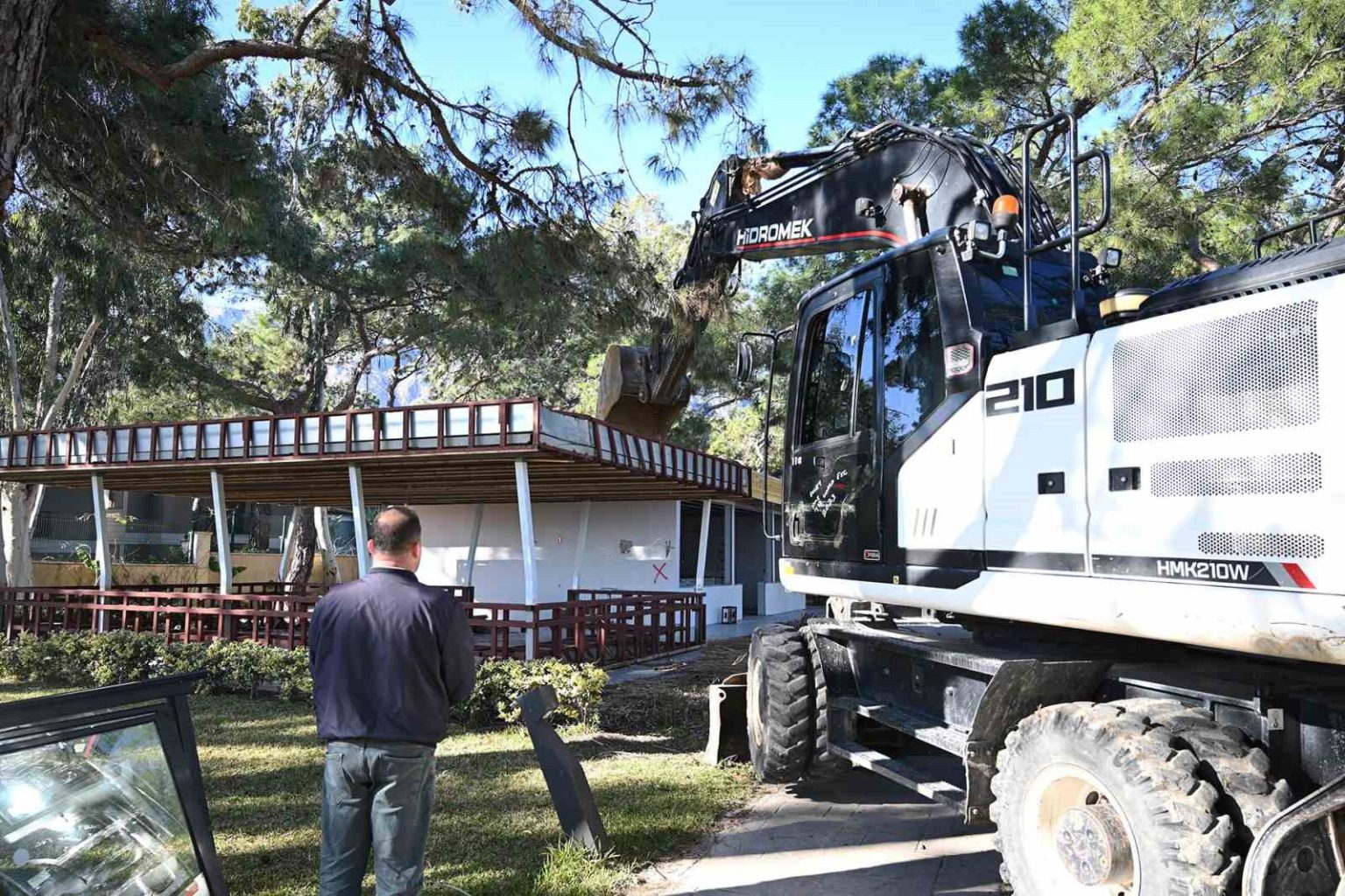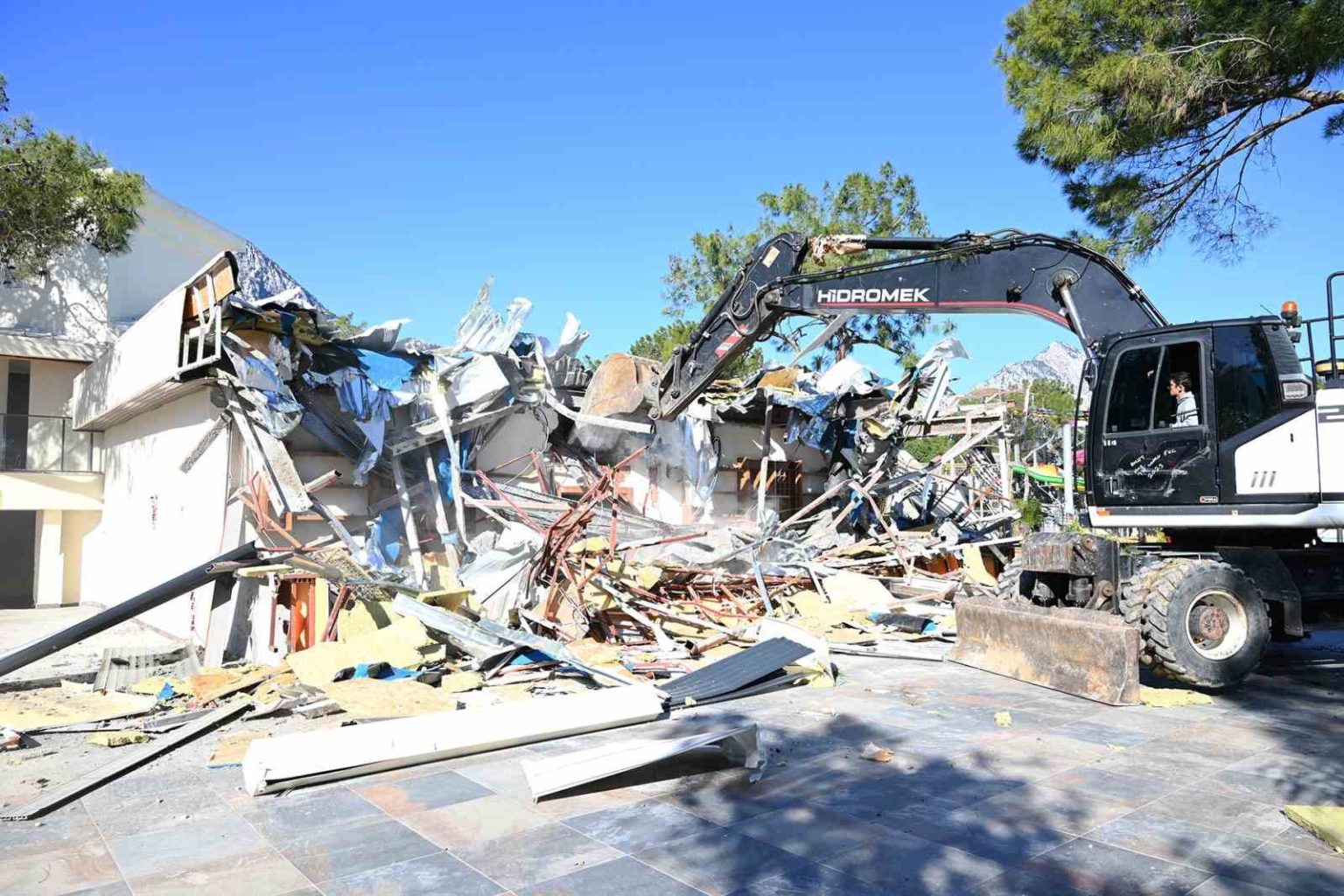 Kemer Belediyesi, Göynük Mahallesi’nde yer alan bir otelde tespit edilen kaçak yapıların yıkımını sürdürüyor.