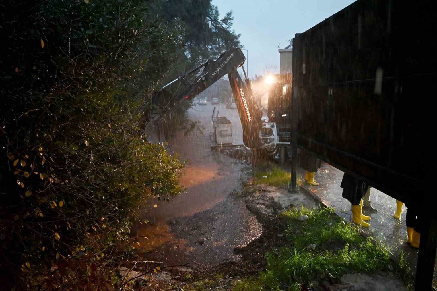 Meteorolojinin şiddetli yağış uyarısının ardından Antalya’nın Kemer ilçesinde etkili olan sağanak, bazı yollarda su taşkınlarına ve baskınlara neden oldu. Kemer Belediye Başkanı Necati Topaloğlu, çizmesini ve yağmurluğunu giyerek, belediye ekiplerini yönlendirdi. Başkan Topaloğlu çalışmalar sırasında Çamyuva Mahallesi’nde yer alan Mehtap Sitesi’nde mahsur kalan 4 çocuk ve yaşlı bir kadını belediye ekipleri ve jandarma ile birlikte kepçe yardımıyla kurtardı.