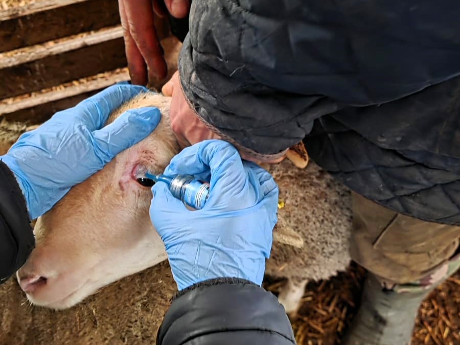 Kırklareli Tarım ve Orman İl Müdürlüğü teknik ekiplerince küpe takılan damızlık kuzulara brusella ve şap aşısı yapılıyor.