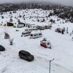 Ankara’nın Kızılcahamam ilçesinde bulunan Işık Dağı eteklerindeki Karagöl Jeositi, kar yağışıyla beyaza bürünürken, kış tatilini doğayla iç içe geçirmek isteyen Başkentlilerin yeni adresi Uludağ yerine Işık Dağı oldu.