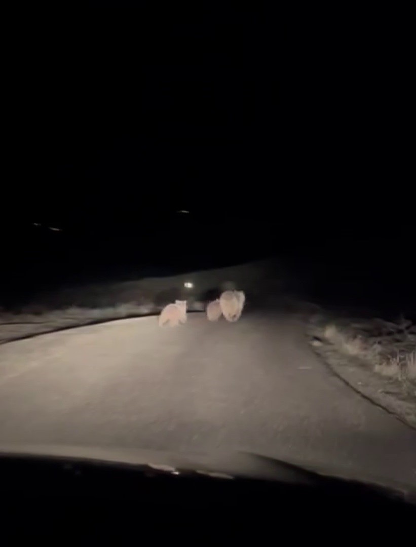 Köyde görev yapan cami imamı Ali Tombaz, akşam saatlerinde ilçe merkezinden köyüne doğru aracıyla seyir halindeyken yolun ortasında ayı ve iki yavrusunu fark etti. Aracını yavaşlatan imam, o anları cep telefonu kamerasıyla kaydetti. Görüntülerde ayı ve yavrularının bir süre yol üzerinde ilerlediği, ardından yolun karşısındaki araziye geçerek gözden kaybolduğu görüldü.