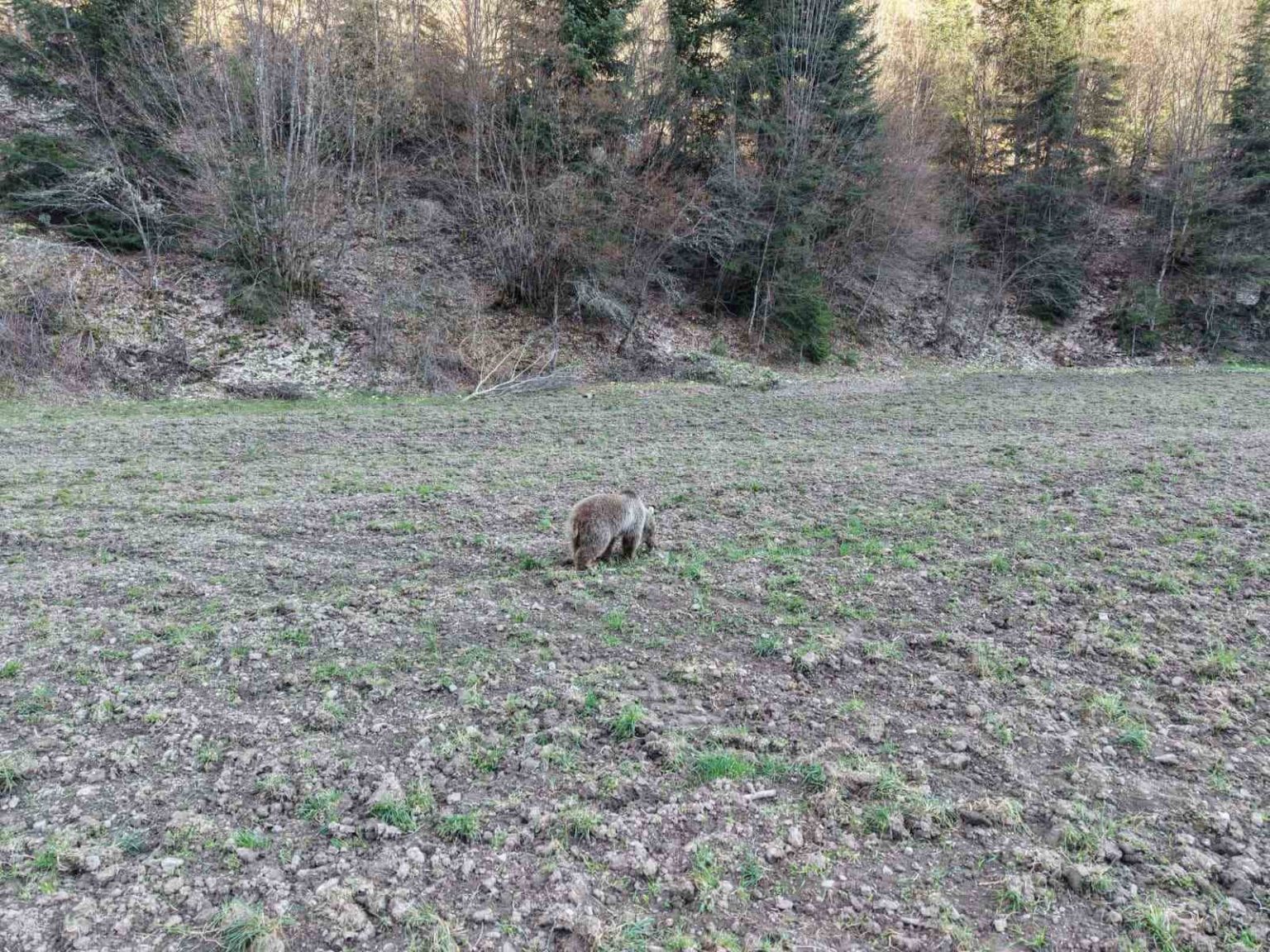 Kastamonu’da baharın gelmesiyle birlikte kış uykusundan uyanan ayılar, ormanlık alanda beslenirken görüntülendi.