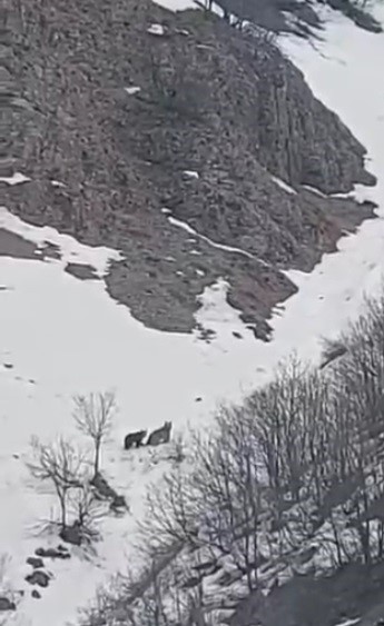 Bingöl’de kış uykusundan uyanan iki ayı, karla kaplı arazide oynarken görüntülendi.
