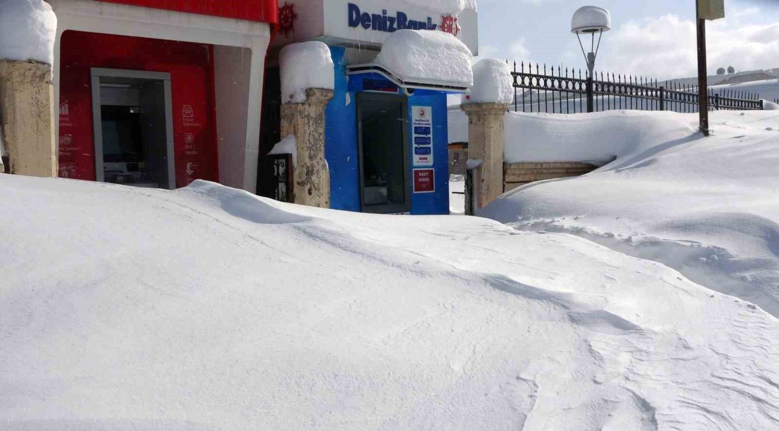 Bitlis’te etkili olan yoğun kar yağışı ve tipi, hayatı olumsuz etkilemeye devam ediyor. Yoğun kar nedeniyle cadde ve sokaklarda ilerlemekte zorlanan vatandaşlar, para çekme noktalarında ilginç manzaralarla karşılaşıyor. Kar yığınlarıyla çevrilen para çekme noktalarında işlem yapmak isteyen vatandaşlar, ATM’lerin önünde ayakta duracak alan bulamayınca karın üzerine oturarak para çekmek zorunda kalıyor.