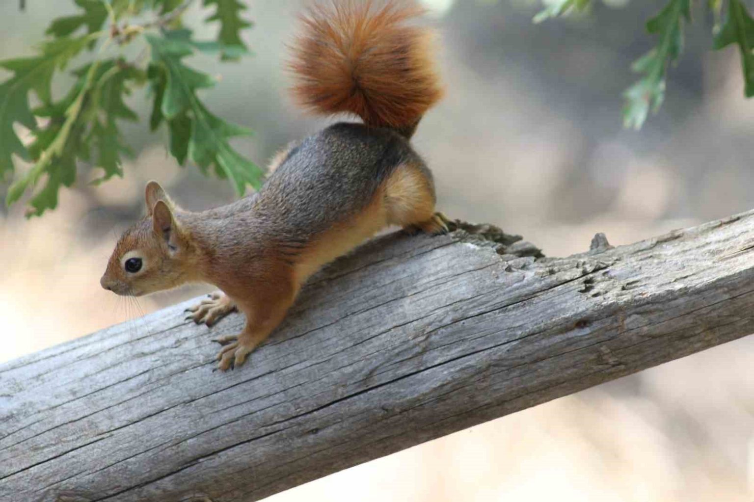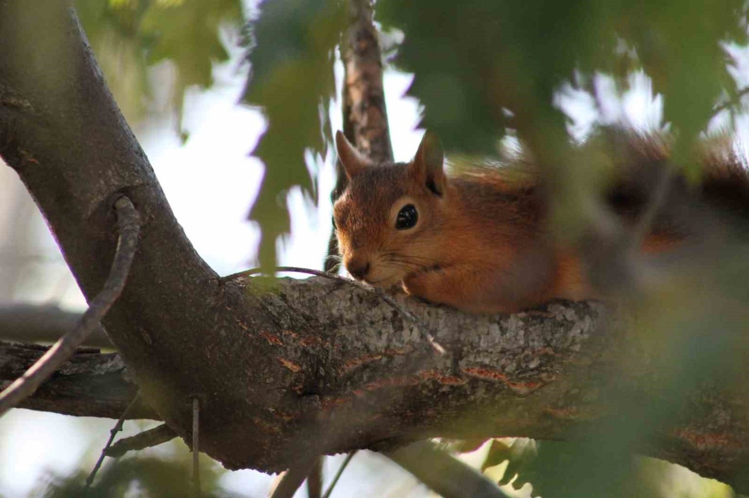 Doğayla iç içe vakit geçirmek isteyen vatandaşların uğrak noktalarından biri olan tabiat parkında piknik yapan Serkan Kelle ve ailesi, beklenmedik bir misafirle karşılaştı. Ailenin yanına kadar gelen kızıl sincap, ikram edilen ekmeği çekinmeden yemeye başladı.
